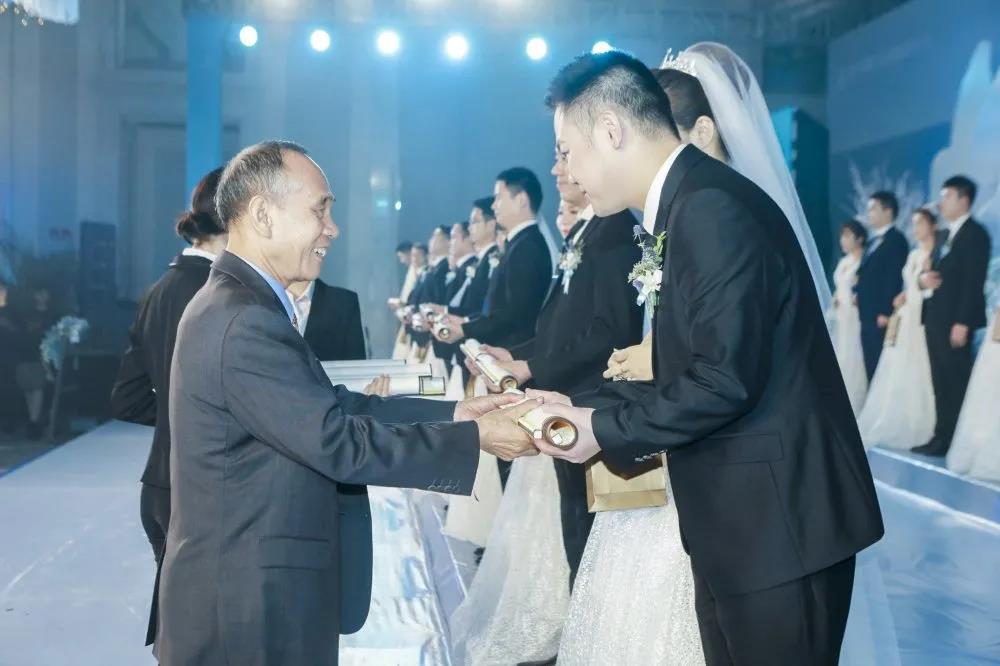 許景(jǐng)新先生親自為新人們(men)證婚,對全體新人喜(xǐ)結良(liáng)緣表示祝賀(hè),希望全體新人(rén)在人生旅程中互敬互愛(ài)、和睦相處,用心經營幸福家庭,用(yòng)愛(ài)締造美好未來!