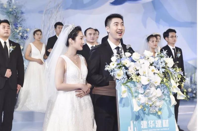 建(jiàn)華建材(海(hǎi)南)有(yǒu)限公司負責人朱華敏(mǐn)先生作為往屆新人代表,為新人送上祝福。本(běn)屆新人代表黃秋濤夫婦(fù)致答謝詞,感恩菠萝视频平台,感謝嘉賓見證。