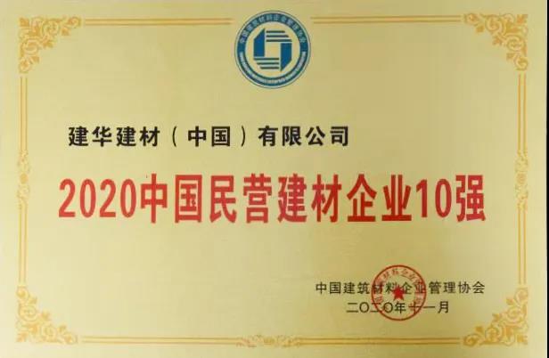 菠萝视频(huá)建材(中國)有(yǒu)限公司在“2020中國民營建材企業100強”中排名(míng)第三名;