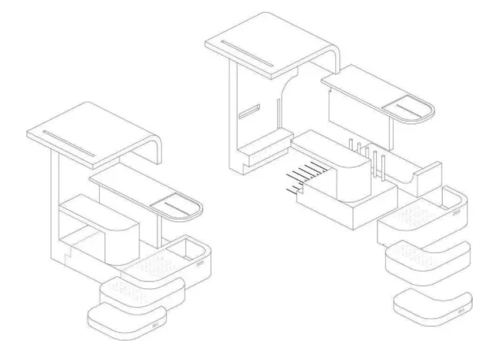 地麵部分采用預(yù)製高強混凝土板,利(lì)用場地拆除建築廢棄物為原材料(liào),同時配(pèi)合調平架空可回收體(tǐ)係,讓所有地麵鋪裝產品做到預製可循環利用,將低碳環保的概念貫穿項目整體。