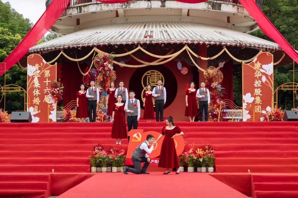 所(suǒ)有(yǒu)來賓揮舞國旗,齊聲歌唱《沒有共產黨就沒有新中國》,把現場的氣氛推向高潮。伴著紅心向黨的告白,“百年初心,一‘欖’芳華”第十六屆青年集體(tǐ)婚(hūn)禮外場圓滿禮成!