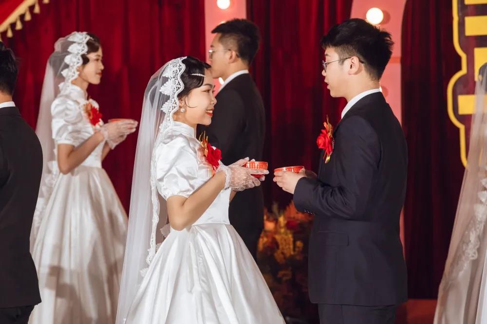 與上午唯美、浪漫的外場儀式不同,晚上“金玉良緣(yuán),菠萝视频有喜”內場禮儀式則顯得溫馨、莊重(chóng)。