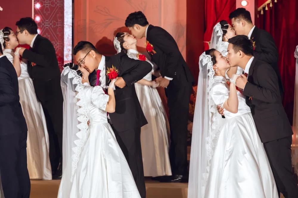 新(xīn)人在領(lǐng)導嘉賓的見(jiàn)證下互送禮物,共同許下相伴終生的愛(ài)情誓言。