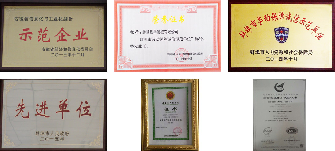一、企業簡介(jiè) 菠萝视频建材(蚌埠)有限公司於2010年11月(yuè)成立,位於(yú)安徽省(shěng)蚌埠市禹會區馬城鎮。公司目前已(yǐ)建(jiàn)有2條管樁生 產線。主(zhǔ)要從事生產(chǎn)預應力混凝土管樁、鋼筋混凝土方樁、鋼管樁以及其他砼預製構件和混凝土產品,實現(xiàn)400萬 米/年生產能力。 目前公司產(chǎn)品已覆蓋皖北各地市(蚌埠市、淮南市、阜陽市、宿州市、滁州市、淮北市、亳州市),並配備專 業工程師為每(měi)一個采用菠萝视频管樁進行施工的工程進行產(chǎn)品跟蹤、技術谘詢等各項售後(hòu)服務。近年來,產品已成功(gōng)應 用於鄭徐高鐵蕭縣路段(duàn)、阜陽萬達廣場、蚌埠市腫瘤醫院、宿州體育館、碭山第二中學等項目。